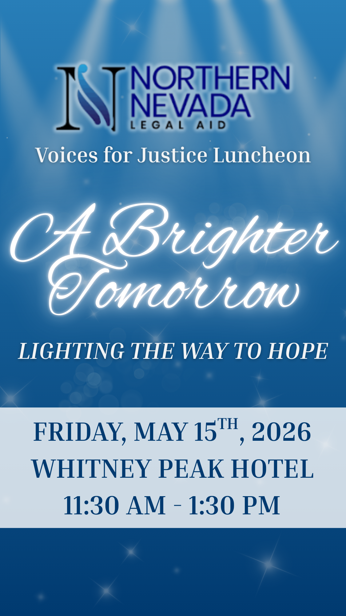Every day, Northern Nevada Legal Aid brings light into some of life’s darkest moments — protecting families from eviction, helping survivors find safety, and ensuring seniors, veterans, and children are not left to navigate the legal system alone. At Voices for Justice, you’ll hear real stories of resilience and transformation, and see firsthand how access to justice can change lives.